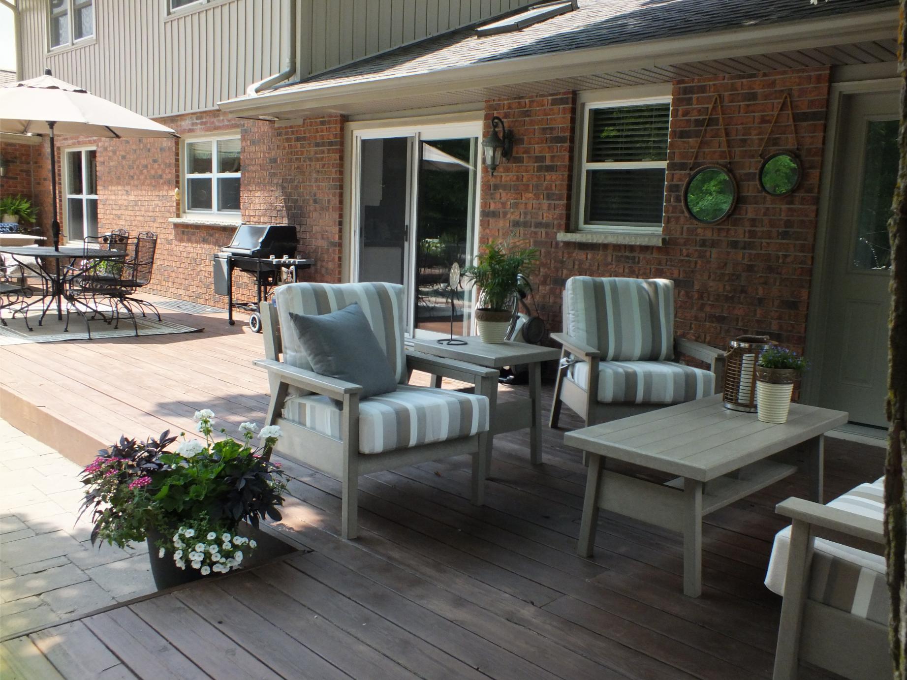 For the exterior new siding and trim was done to work with existing brick to bring it up to date.